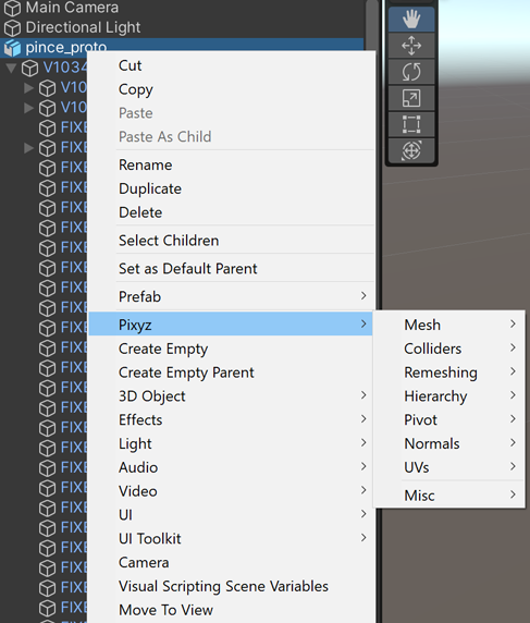 Use the out-of-the-box actions from the Toolbox to optimize or stage scenes in a semi-automated way. Unlike with Rule Engine actions, Pixyz applies Toolbox actions manually on the currently selected GameObjects in the scene.